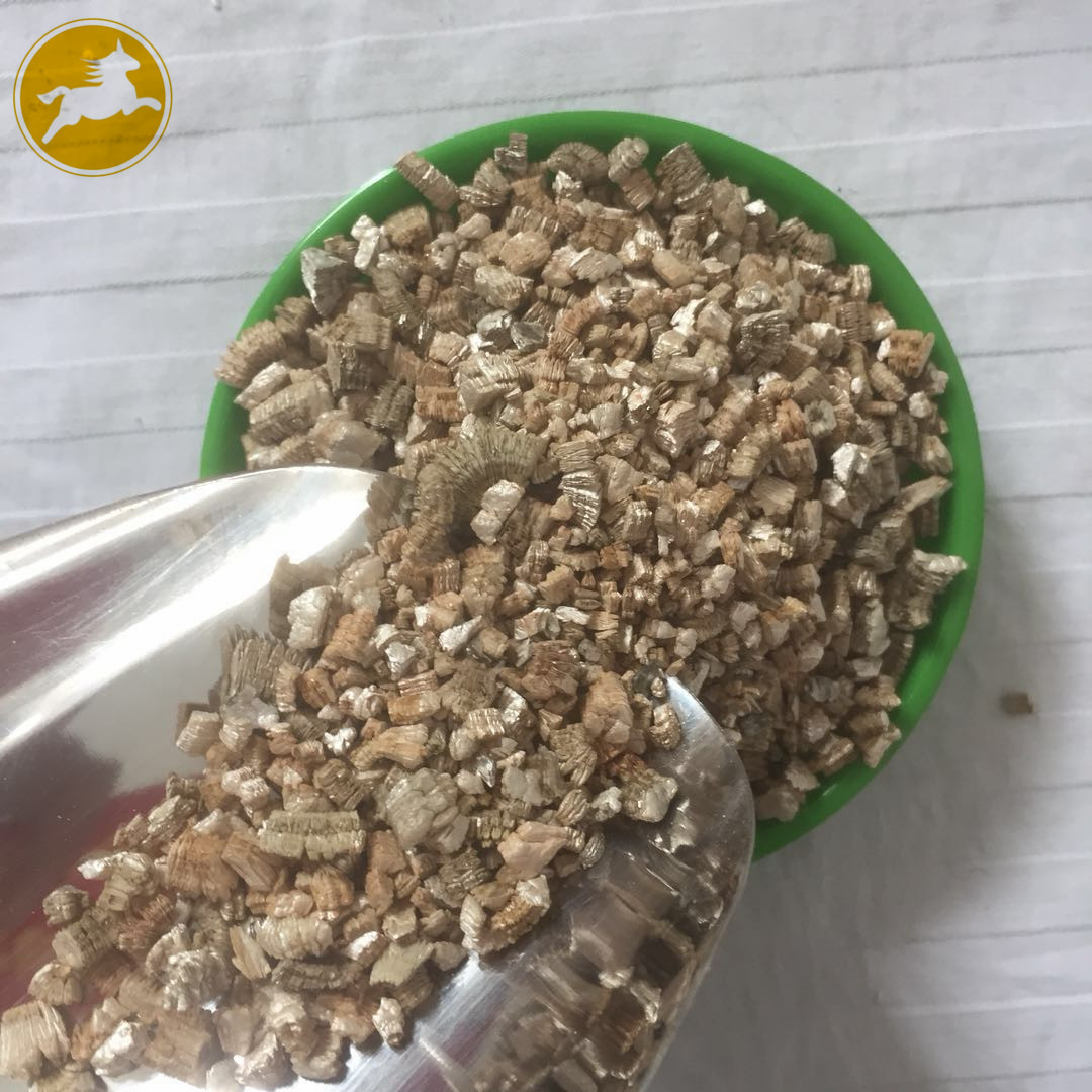 蛭石具有隔熱、耐凍、抗菌、防火、吸水、吸聲等優(yōu)異性能,在800~1000℃下焙燒0.5~1.0分鐘,體積可迅速增大8~15倍,高達(dá)30倍。膨脹后的比重50-200kg/m3,顏色變?yōu)榻瘘S或銀白色,生成一種質(zhì)地疏松的膨脹蛭石。